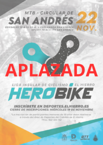 La organización informa de que la prueba MTB – Circular de San Andrés, prevista para el 22 de noviembre, queda aplazada.